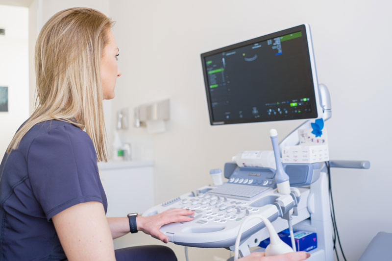 Aparat USG – jest położony w ciągu konsultacyjnym. Jest to nowoczesny sprzęt, lidera w branży, firmy General Electric, ginekologiczno – położnicza seria Voluson, wysoko ceniony przez specjalistów model S8 – jest to jeden z najnowocześniejszych systemów ultrasonograficznych przeznaczonych do specjalistycznej diagnostyki ambulatoryjnej. Możemy wykonać badania USG – od obrazowania macicy, ocenę zmian jajników, kontrolę owulacji i drożności jajowodów, do badań prenatalnych i pozostałych badań USG u pacjentek ciężarnych. Wysoka precyzja diagnostyki obrazowej pozwala nam dobrać optymalne postępowanie lecznicze.